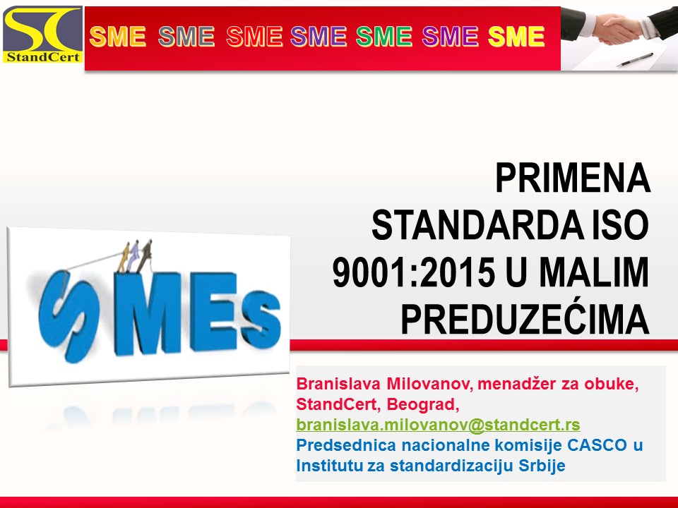 09-11.03.2016. Predstavnici StandCerta učestvovali na jubilarnoj 25. manifestaciji pod nazivom „Nedelja kvaliteta“. Organizator ove manifestacije FQCE. StandCert je učestvovao sa radom autorke Branislave Milovanov, pod nazivom: „Primena standarda ISO 9001:2015 u malim preduzećima“